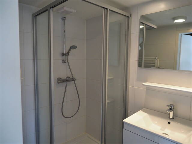 U komt binnen in de eerste ruimte (slaapkamer) waar ook de wasmachine aansluiting is. Aangrenzend aan deze ruimte is de badkamer gelegen. Als u doorloopt vindt u de derde slaapkamer.