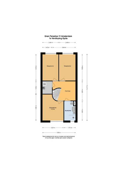 Oorspronkelijk waren er drie slaapkamers en nu zijn er twee zeer ruime slaapkamers. Er is een extra plattegrond gemaakt, waarop de mogelijke indeling met drie slaapkamers is weergegeven. Aan de achterzijde bevindt zich de master bedroom van meer dan 20 m² en de slaapkamer aan de voorzijde is circa 11 m² groot.