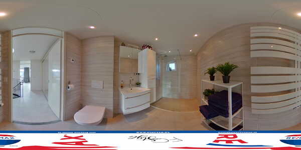 In 2019 is de badkamer vernieuwd met een fantastisch eindresultaat. De fraaie betegeling trekt direct de aandacht, net als het luxe sanitair. Uw oog valt op de zeer grote inloopdouche en verder heeft deze badkamer een wastafelmeubel, designradiator en een tweede toilet. Onder de grote, vierkante vloertegels ligt elektrische vloerverwarming.