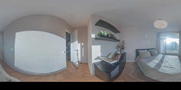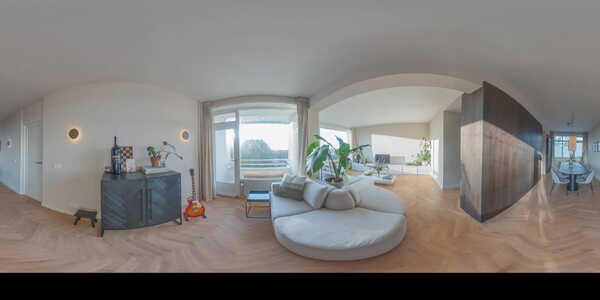 De centraal geplaatste kast in de woonkamer is een echte eyecatcher en creëert een apart eetgedeelte. De grote ramen zorgen voor volop daglicht. Dit, in combinatie met de in Weense punt gelegde vloer in een lichte tint en de strak gestucte wanden, zorgt voor een fijne en moderne uitstraling. Vanuit de woonkamer stap je zo het eerste zonnige en ruime balkon op, waar je kunt genieten van het vrije uitzicht.