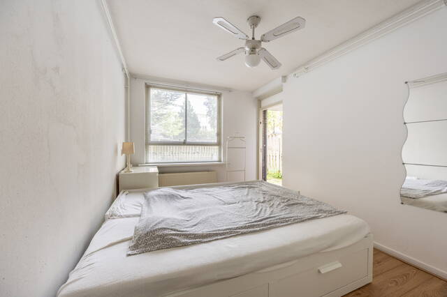 Aan de achterzijde liggen twee goed bemeten slaapkamers, beide met uitzicht op de tuin. De grootste slaapkamer biedt directe toegang tot de tuin.