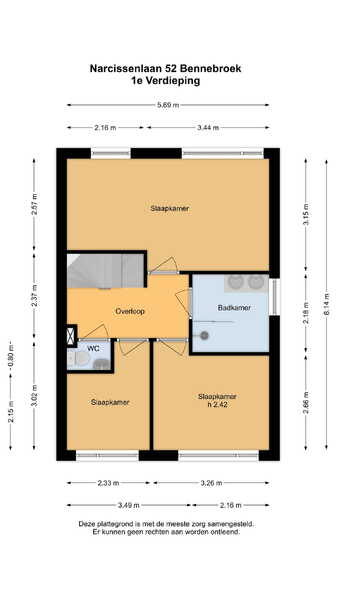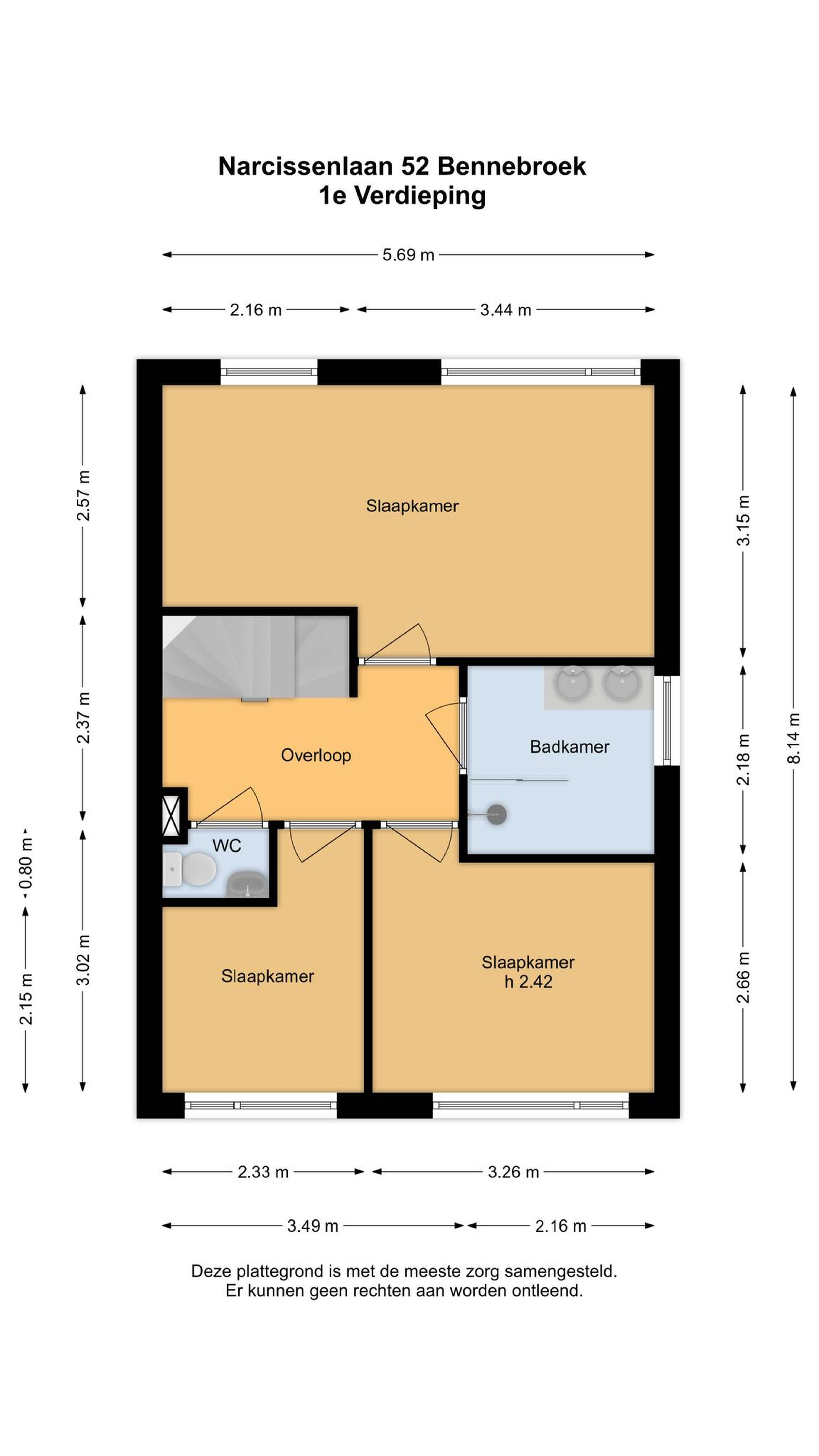Met een breedte van bijna 5.70 meter is dit een huis met verrassend veel ruimte. Niet alleen beneden, maar ook boven. Zo heeft u op de eerste verdieping de beschikking over drie slaapkamers, waarvan twee aan de voorzijde. De derde, en tevens grootste slaapkamer is aan de achterzijde.