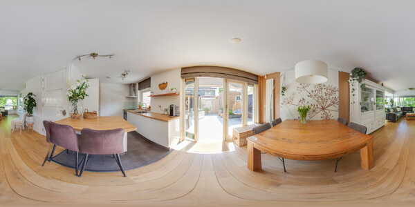 De woon-/eetkamer is een geweldige leefruimte met lichtinval aan drie zijden en openslaande deuren naar de achtertuin. Een van de sfeermakers is de massief eikenhouten vloer, die bij verschillende interieurstijlen past. Vlak naast de keuken ziet u een paneeldeur, die toegang biedt tot een handige bergkast onder de trap.