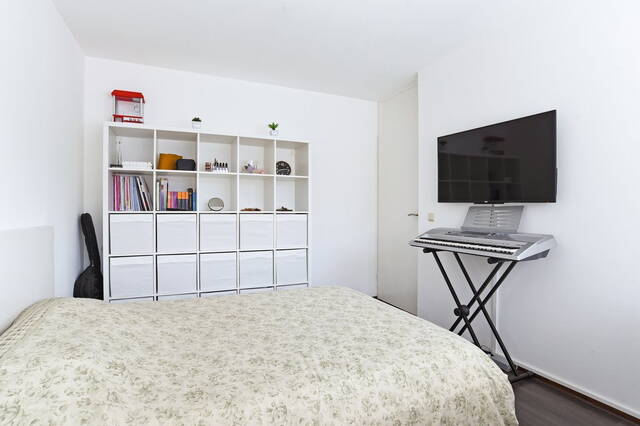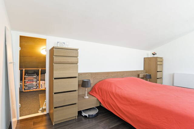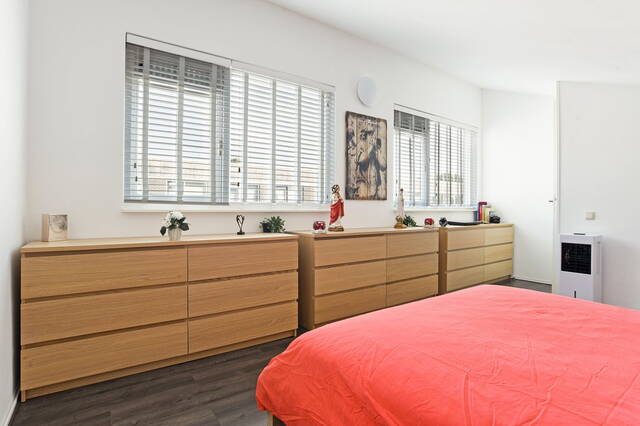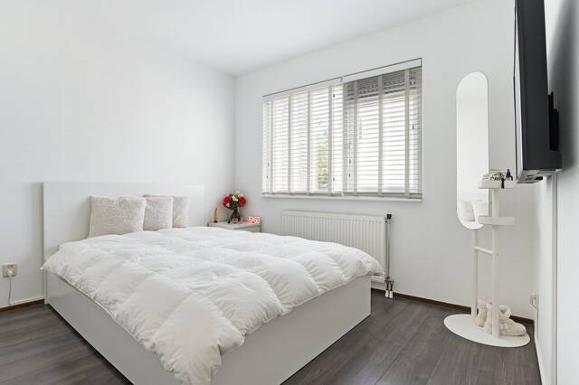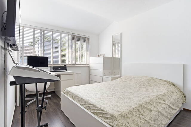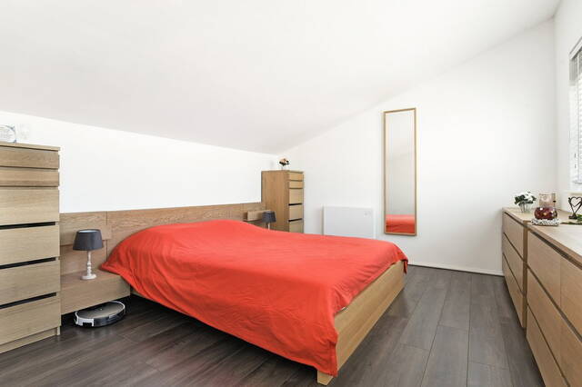 Op deze verdieping is een royale slaapkamer gerealiseerd, waarvan de vloer is voorzien van laminaat en de ramen met witte jaloezieën. In de georganiseerde schone berging bevindt zich de CV- ketel Intergas HRE 2014.