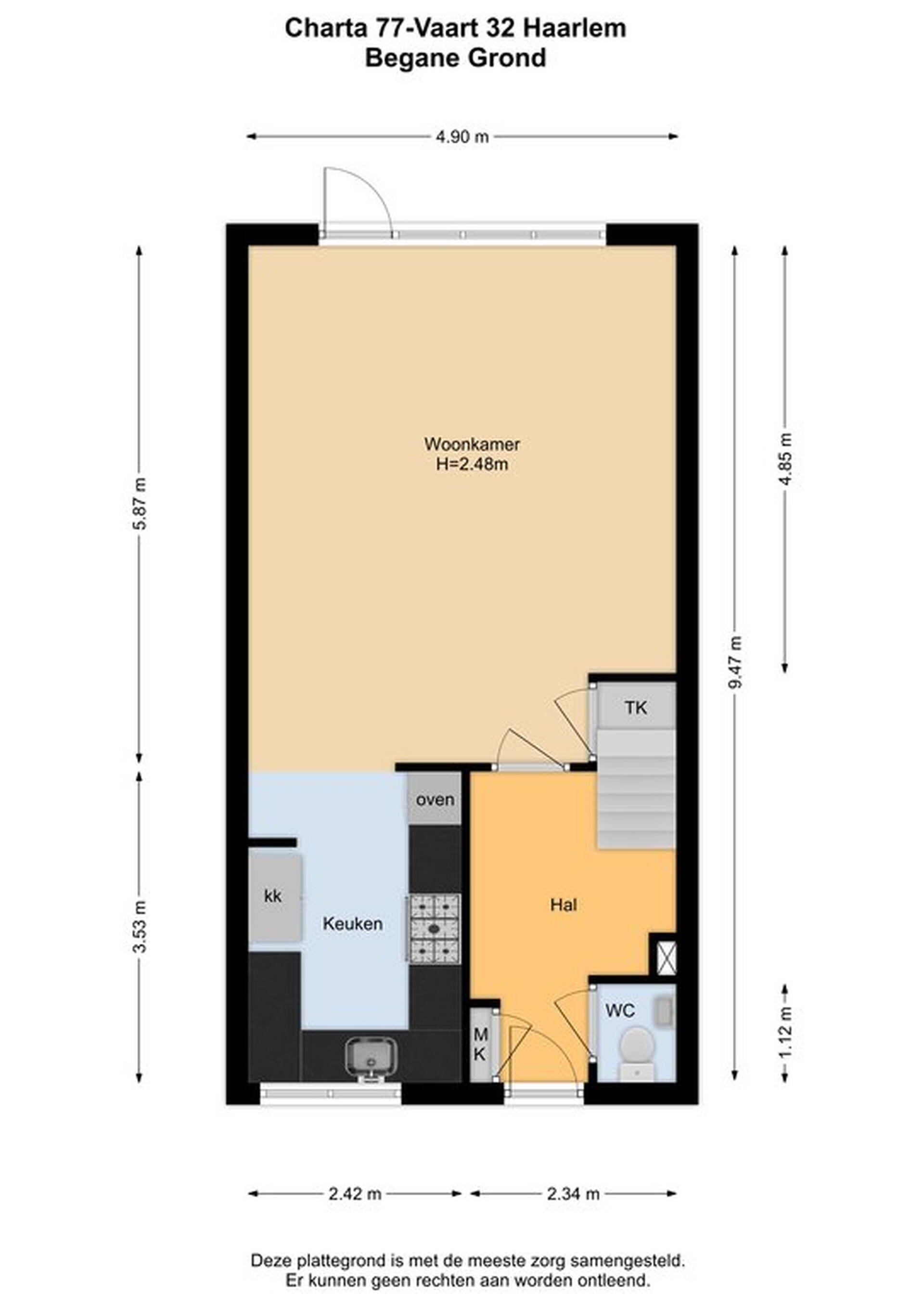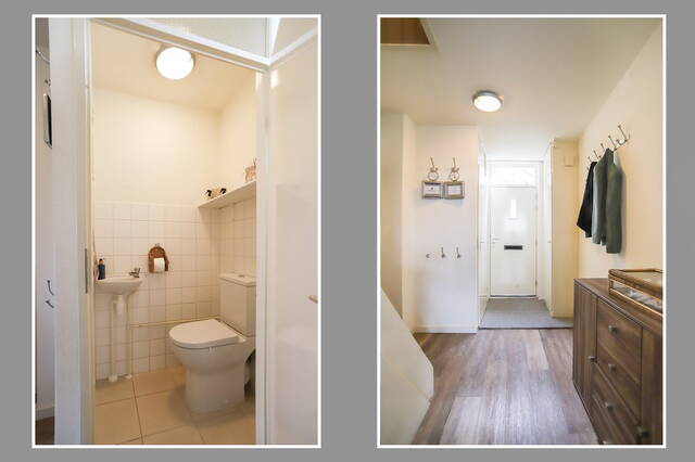 Als u de mooie ligging aan het water heeft bewonderd is het tijd om deze superleuke woning van binnen te bekijken. Allereerst de hal; een grote ruimte met de meterkast, de trap naar de eerste verdieping en aan de rechterzijde de nette toiletruimte met fonteintje. In de hal, woonkamer en keuken ligt een mooie pvc-vloer, gelegd in 2017.