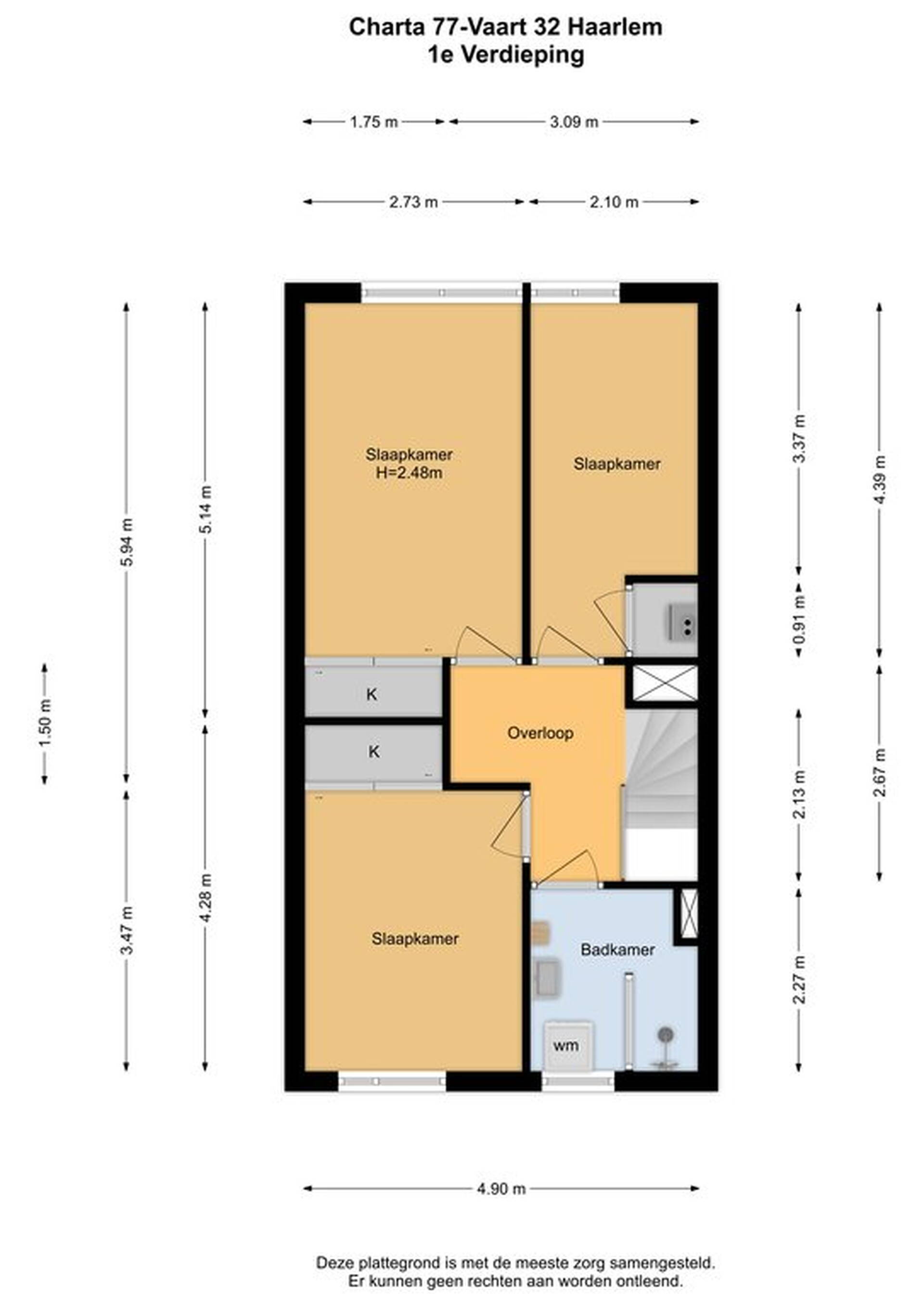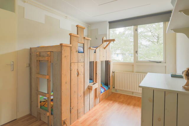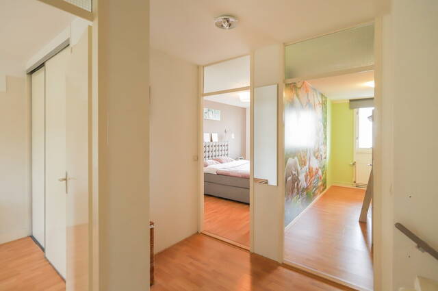 Op de eerste verdieping zijn maar liefst drie slaapkamers en de in 2016 vernieuwde badkamer. De twee grootste slaapkamers hebben een ruime, vaste kast met schuifdeuren en in de derde slaapkamer is een kast met de cv-ketel. Op de overloop en in de slaapkamers ligt een laminaatvloer en de algehele afwerking is netjes.