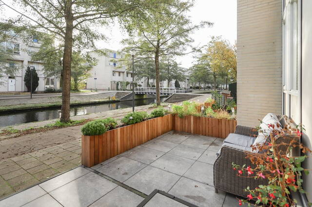 De woning heeft niet alleen een achtertuin maar ook een leuke voortuin. Mooie bestrating is gecombineerd met een vaste plantenbak van hout, wat zorgt voor een trendy look. Stelt u zich eens voor dat u hier zit met een hapje, drankje en uitzicht over het water…