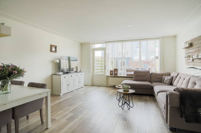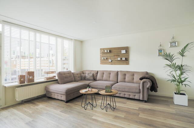 De tuingerichte woonkamer heeft grote ramen aan de westzijde waardoor veel daglicht en zon naar binnen valt. Onder de trap is een handige bergkast en via de achterdeur loopt u de tuin in. De afwerking van de vloer, wanden en het plafond is uitstekend; hier hoeft u niet te starten met verbouwen. Ziet u in deze sfeervolle woonkamer al uw bank, tv-meubel en eettafel staan?