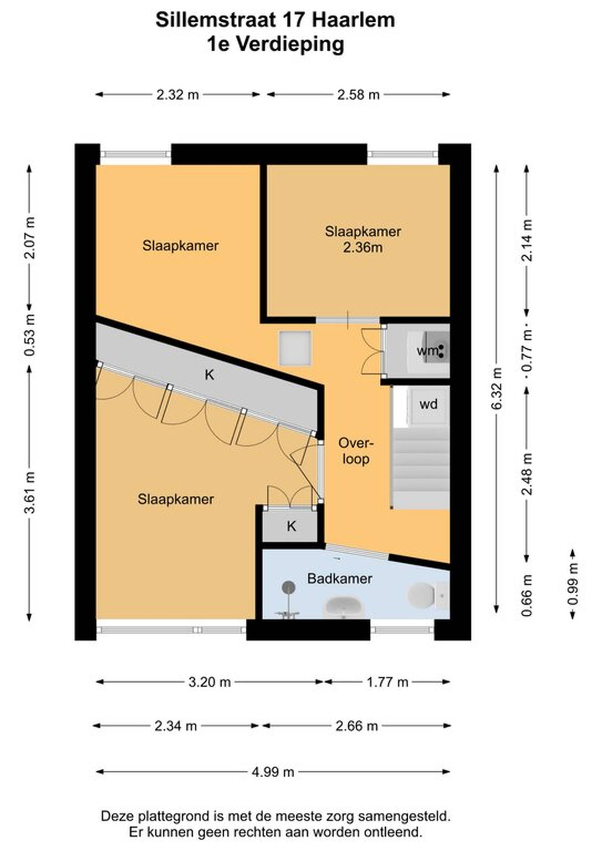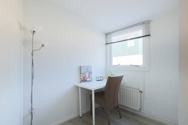 Aan de voorzijde is de hoofdslaapkamer met een brede kastenwand en een extra vaste kast. De tweede en derde slaapkamer zijn aan de achterzijde; dit zijn prima kinderkamers of werkkamers. De plafonds en wanden staan netjes in de verf en op nagenoeg de hele verdieping ligt een mooie laminaatvloer, gelegd in 2020.