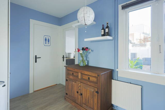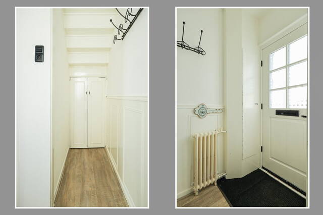Dit is een woning met karakter en sfeer; dat merkt u direct als de voordeur open gaat. De lambrisering, het hoge plafond en de originele radiator vormen een mooie combinatie met de laminaatvloer. In de hal ziet u de meterkast, de deur naar de woonkamer en onder de trap is een handige berging.
