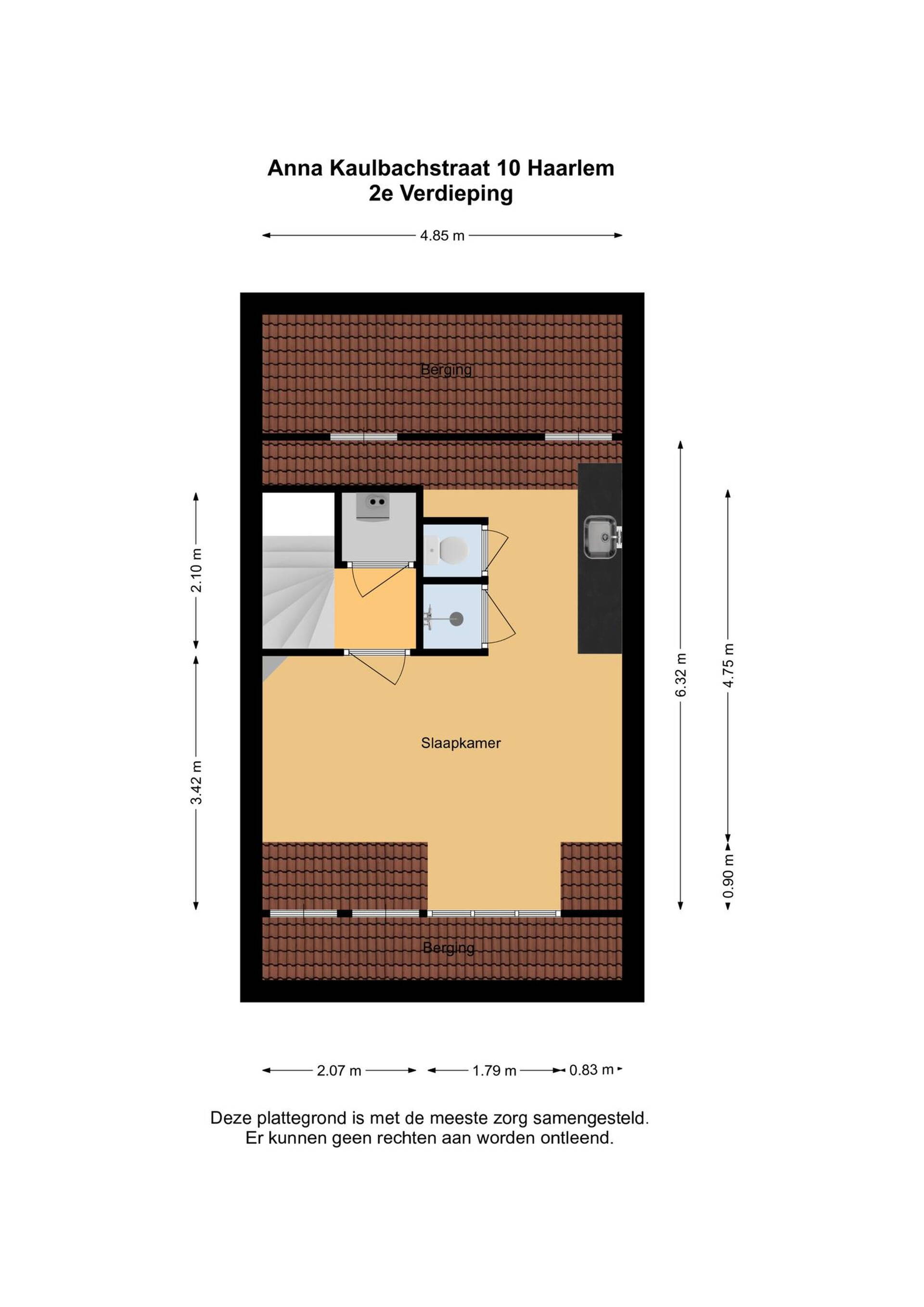 In de schuinten van het dak is veel bergruimte en aan de voorzijde is een grote dakkapel geplaatst.
