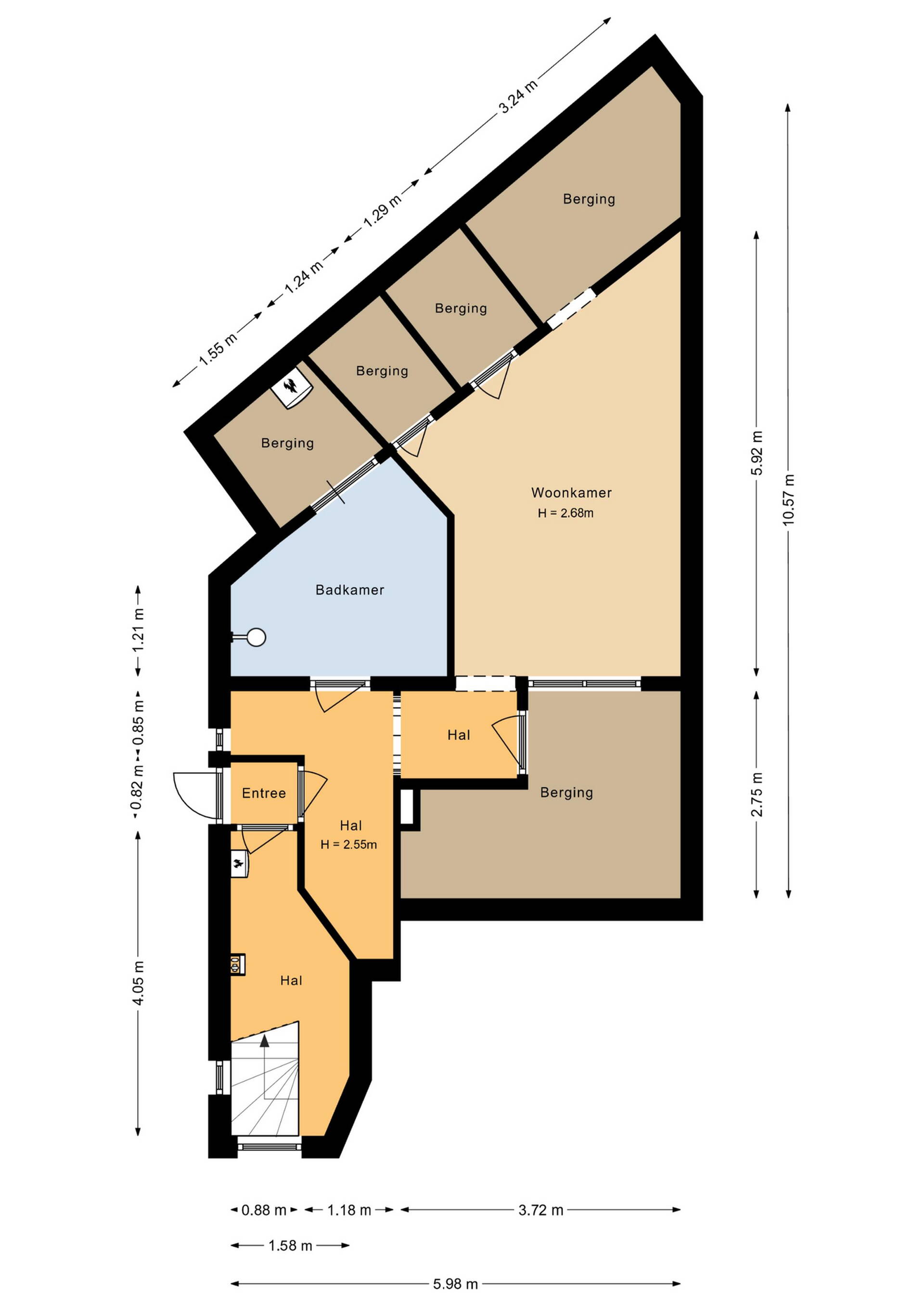 Bij binnenkomst betreed je de hal, die toegang biedt tot diverse vertrekken op de begane grond. Hier vind je een ruime badkamer, een multifunctionele ruimte die kan dienen als zelfstandig appartement of extra opslagruimte, alles is mogelijk! Vanuit de hal leidt een trap naar de eerste verdieping.