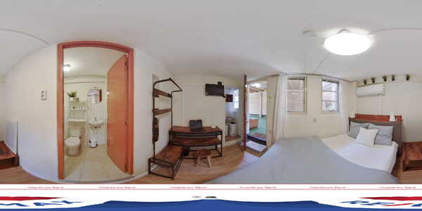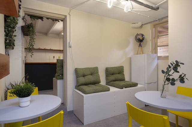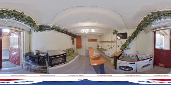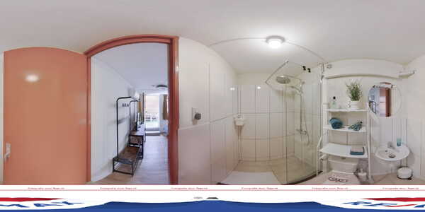 In de keuken staan een bank, waar gasten tv kunnen kijken, en een wasmachine. De aansluitende gezamenlijke ruimte is de plek voor een ontbijt of een kop koffie. Beide kamers zijn voorzien van airco en de badkamers zijn ingedeeld met een douche, toilet en wastafel.