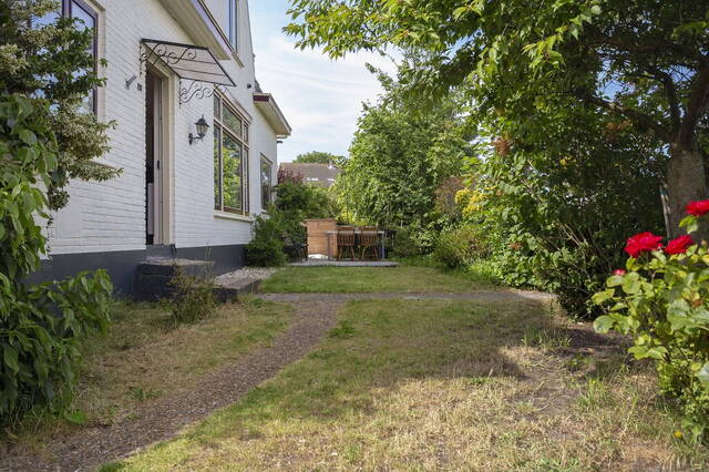Deze charmante, vrijstaande woning staat op een mooi perceel en heeft een mooie siertuin met een gazon, terras, diverse bloemen en planten en enkele bomen die zorgen voor privacy en natuurlijke schaduw. Voor de overkapping is een oprit met een flauwe helling; hier is het mogelijk om op eigen terrein te parkeren.