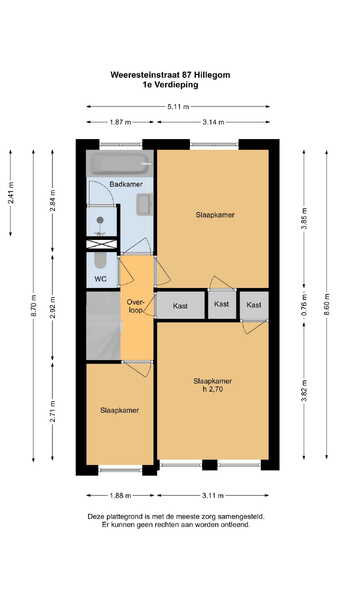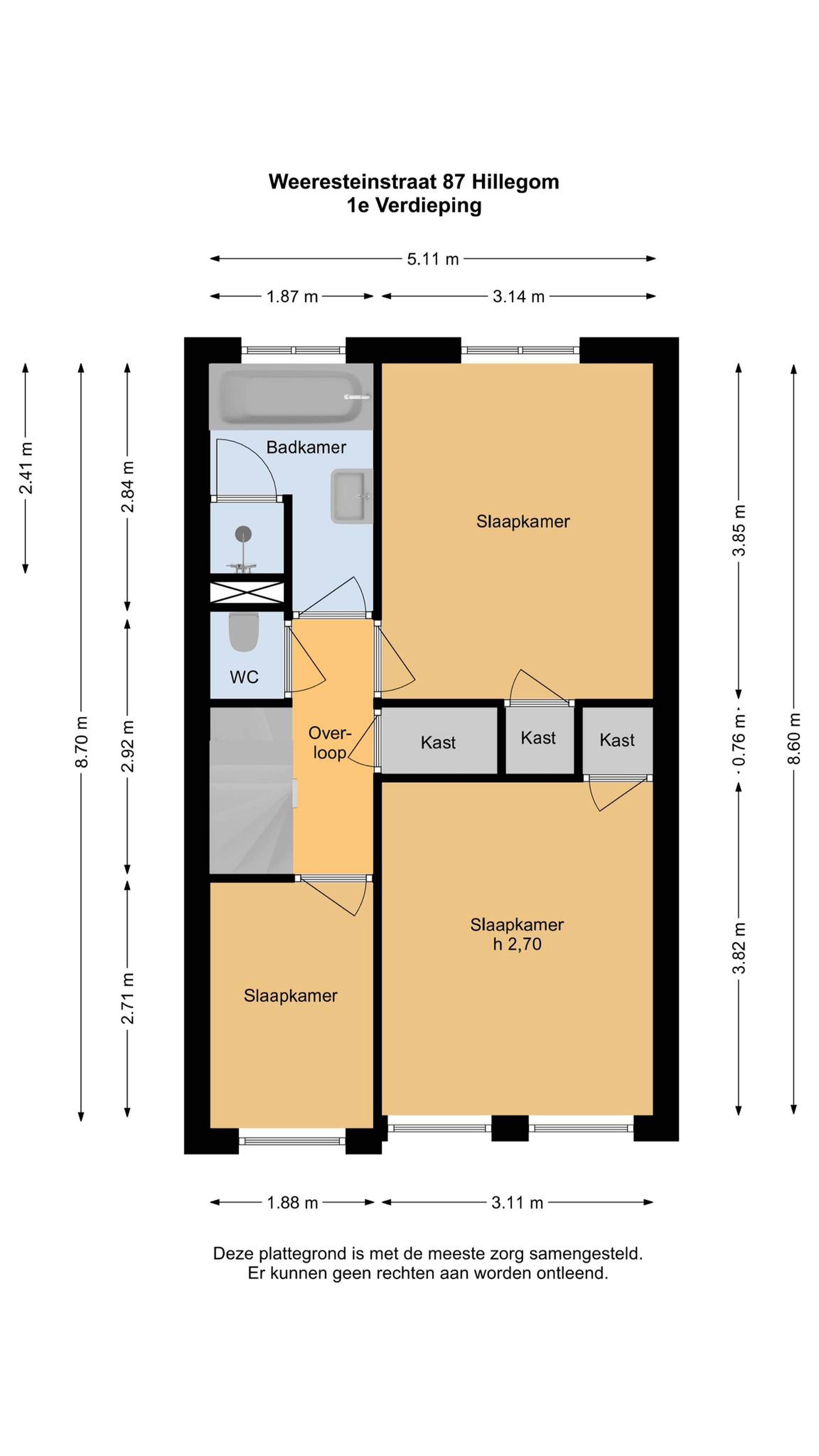 Stijl, sfeer en comfort zijn ook aanwezig op de eerste verdieping. Vanaf de overloop zijn drie slaapkamers, een badkamer en een separate toiletruimte te bereiken. Op een groot deel van deze verdieping ligt zacht tapijt en ook hier zijn de muren en plafonds glad gestuct.