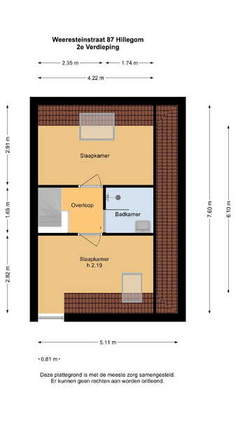 Op de overloop en in beide slaapkamers ligt zacht tapijt en het steile, schuine dak met grote ramen zorgt voor prettig lichtinval, de originele balkenstructuur van het dak is hier bewaard gebleven. De slaapkamer aan de voorzijde is ingericht als zitkamer en de kamer aan de achterzijde als ruime tweepersoonskamer. In de badkamer (2019) ziet u een inloopdouche en een wastafelmeubel.