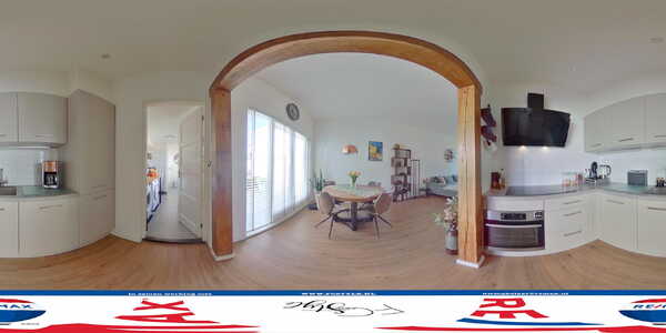 Met een lengte van 8.60 meter, een hoog plafond en fraai lichtinval aan twee zijden is de woonkamer een fantastische leefruimte boordevol sfeer. Glad stucwerk, geschilderd in een lichte kleur, maakt de woonkamer heel ruimtelijk en openslaande deuren geven toegang tot de tuin. Het zitgedeelte bevindt zich aan de voorzijde en het eetgedeelte grenst aan de halfopen keuken.