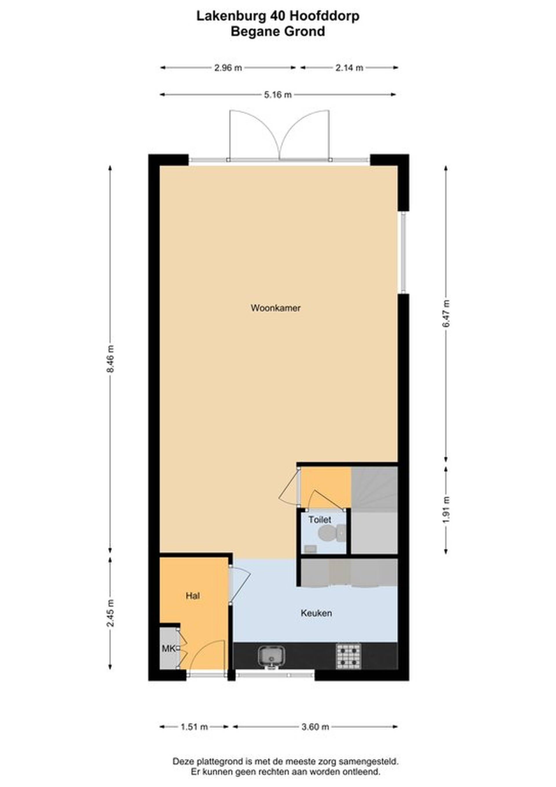 Via het pad in de voortuin loopt u naar de voordeur van deze zeer ruime, aan de achterzijde uitgebouwde hoekwoning. Open de voordeur en kom in de hal met aan de linkerzijde de meterkast, verscholen achter de openslaande louvredeuren.