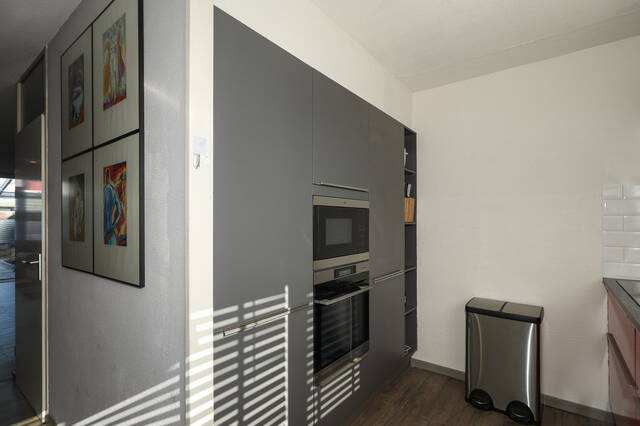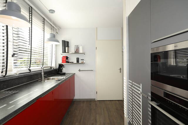 We vervolgen onze weg naar de keuken; een prachtige ruimte waar de kookliefhebber van gaat watertanden. De moderne keuken in dubbele wandopstelling is in 2018 geplaatst en voorzien van alle benodigde inbouwapparatuur van AEG: een inductiekookplaat met booster, een design afzuigkap, vaatwasser, quooker, (stoom)oven, magnetron, een koelkast en een vriezer.