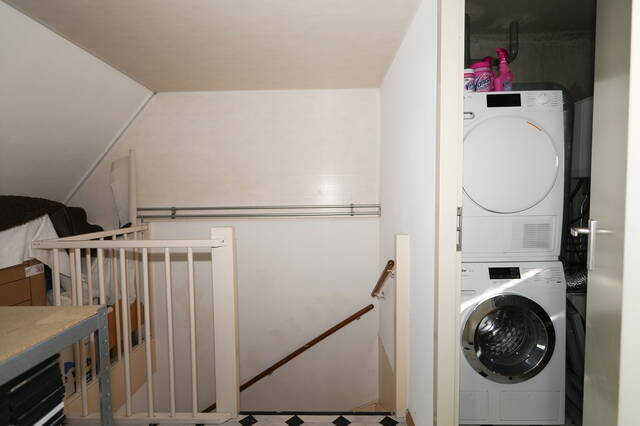 Via een vaste trap is de tweede verdieping te bereiken. Vanaf de overloop zijn de wasruimte en de derde slaapkamer te bereiken. De wasruimte biedt veel bergruimte en hier hangt de cv-ketel die de woning verwarmt en zorg voor warm water. In de nok is een praktische zolderberging gemaakt.