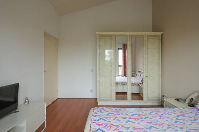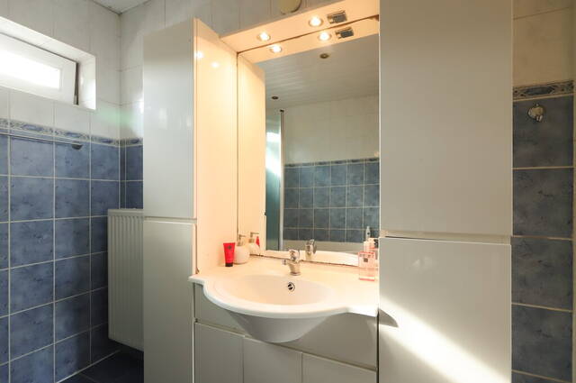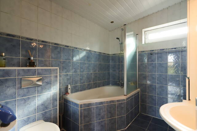Vanuit de slaapkamers aan de achterzijde kijkt u uit over het water en het groen. Aan de voorzijde, naast de derde slaapkamer, is de badkamer met een ligbad, tweede toilet en een wastafelmeubel. De wanden zijn geheel betegeld in wit en blauw; dezelfde kleuren als de toiletruimte op de begane grond.