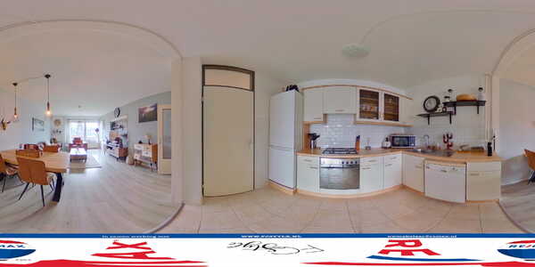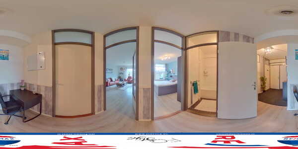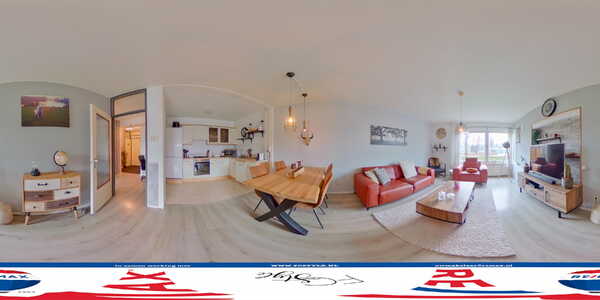 Open de voordeur en u komt in de ruime hal van het appartement. De wanden zijn deels behangen in een houtpatroon en deels geschilderd, op de vloer ligt laminaat en er is meer dan genoeg ruimte voor een mooie kast. Ook is er een werkplek gemaakt; ideaal in de huidige tijd waarin we veel vanuit huis werken. Rechts in de hal zijn de toiletruimte, wasruimte en badkamer.
