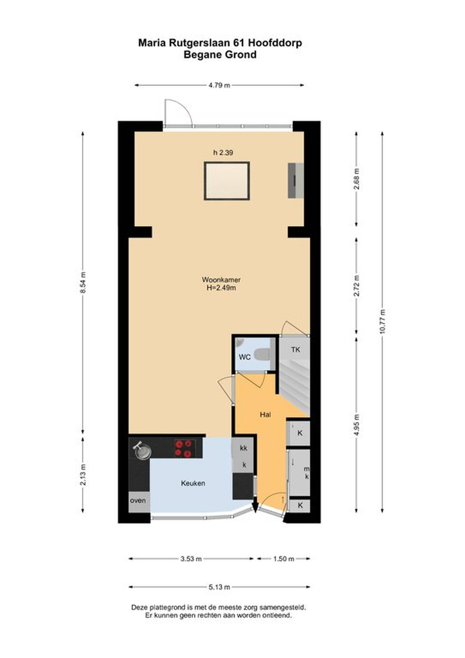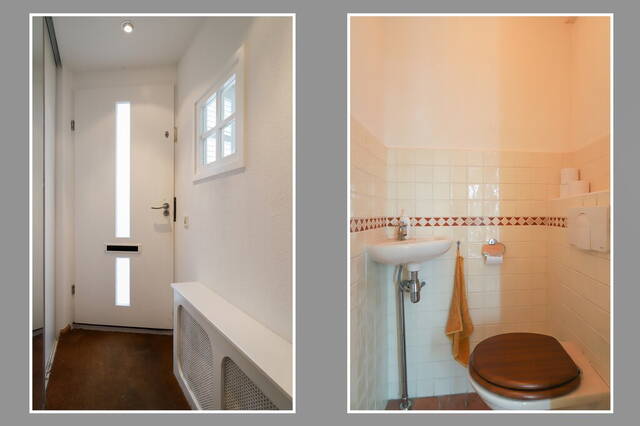 Aan de buitenzijde ziet u een leuke woning met shutters achter de keukenramen en bij de nok is te zien dat de woning een dakopbouw heeft. Allereerst de hal; deze is optimaal benut doordat er een vaste garderobekast is gemaakt. Naast de trap naar de eerste verdieping is de toiletruimte, voorzien van een fonteintje. Door het speelse raampje in de hal kunt u al een glimp opvangen van de keuken en heeft u gelijk verbinding.