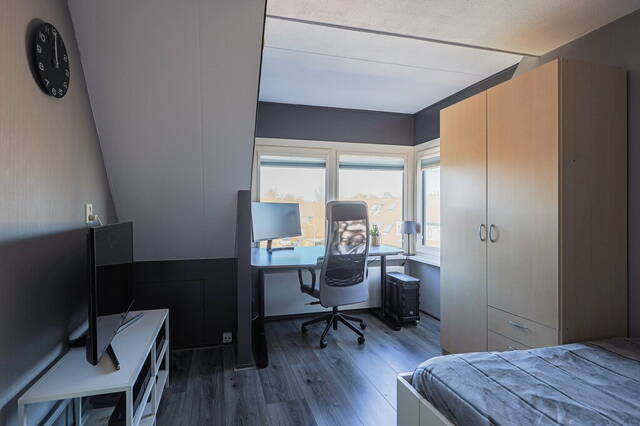Via een vaste trap komt u op de overloop van de tweede verdieping met aansluitend de wasruimte, cv-ruimte en de vierde slaapkamer. De slaapkamer heeft een dakkapel aan de voorzijde en een wastafel. In de wasruimte kunnen de wasmachine en droger prima staan. De deur in de wasruimte geeft toegang tot een berging, voorzien van een dakraam.