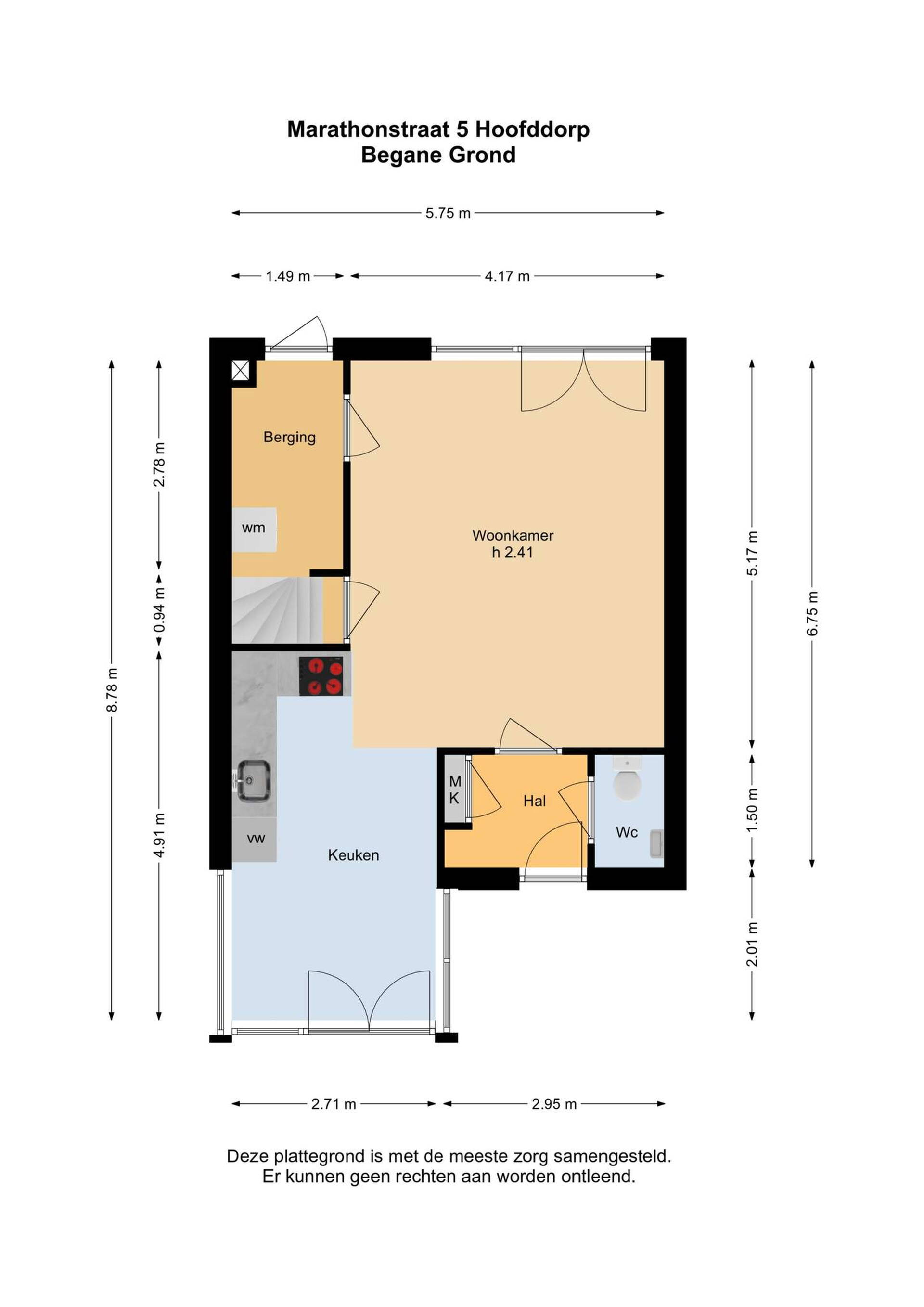 Via de diepe voortuin loopt u naar de voordeur van deze sfeervolle woning. De hal is opvallend breed en geeft toegang tot de woonkamer, meterkast en de nette toiletruimte met fonteintje.