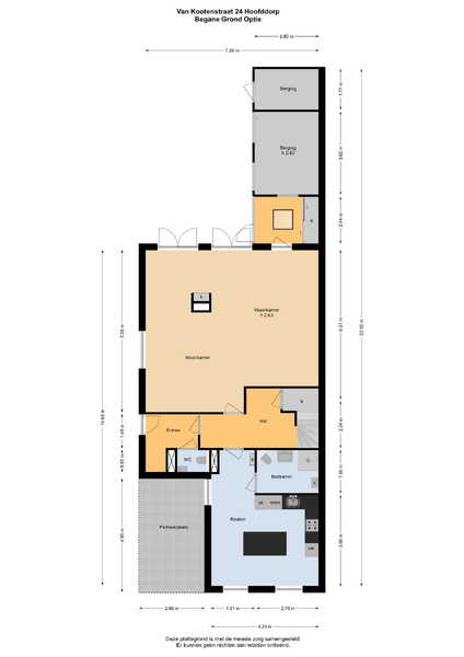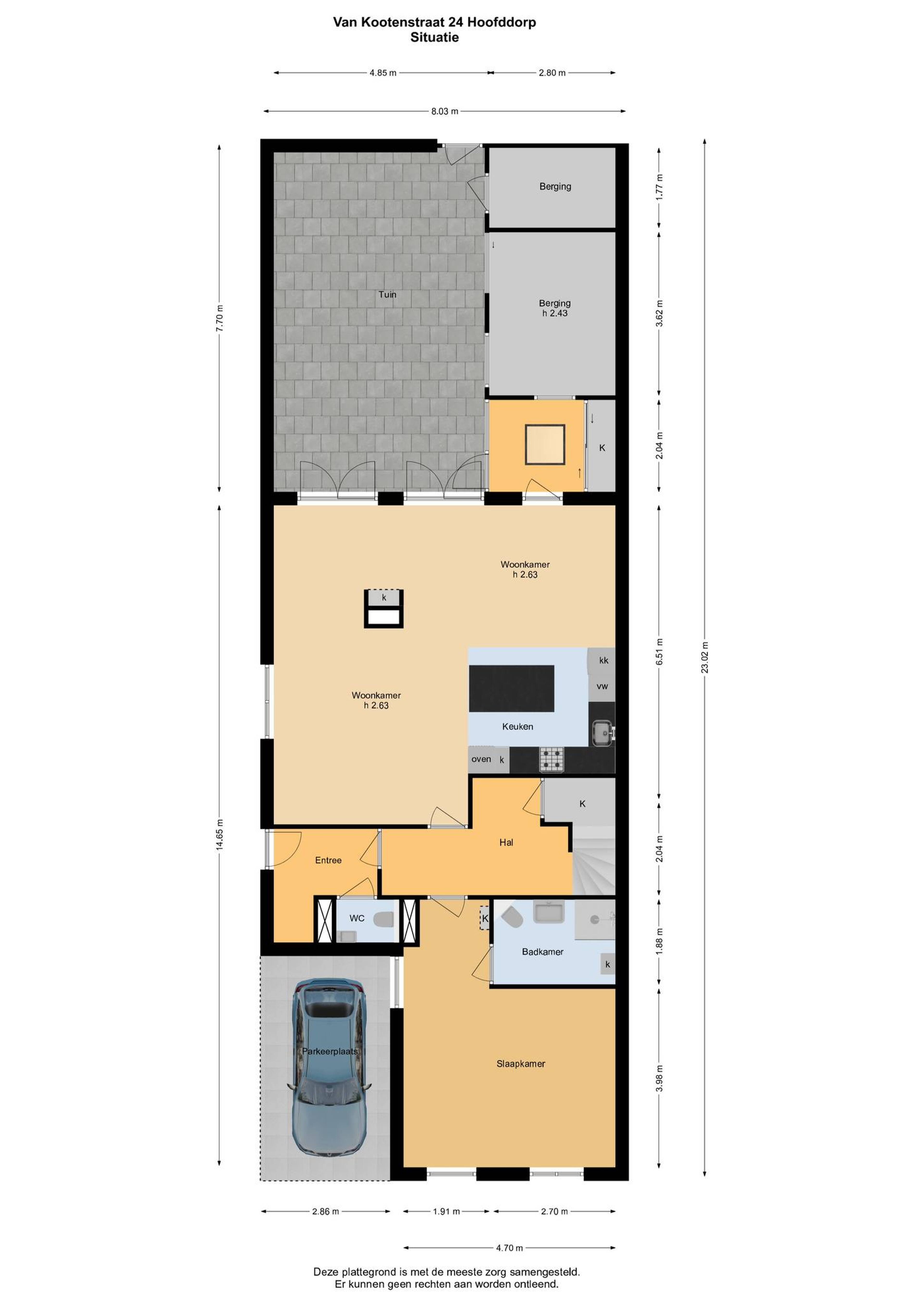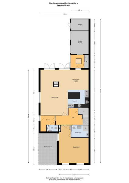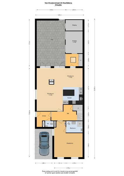 Vanuit de woonkamer en het portaal is de ommuurde, onderhoudsvriendelijke achtertuin te bereiken. De beplanting heeft weinig onderhoud nodig en op het terras is genoeg ruimte om met meerdere mensen buiten te zitten. Doordat de omliggende bebouwing laag is kunt u een groot deel van de dag in de zon zitten. Er is een brede poort naar het achtergelegen hofje en aan de voorzijde is de carport met een uitrit naar de Van Kootenstraat. Hierdoor is het mogelijk om overdekt, op eigen terrein te parkeren.