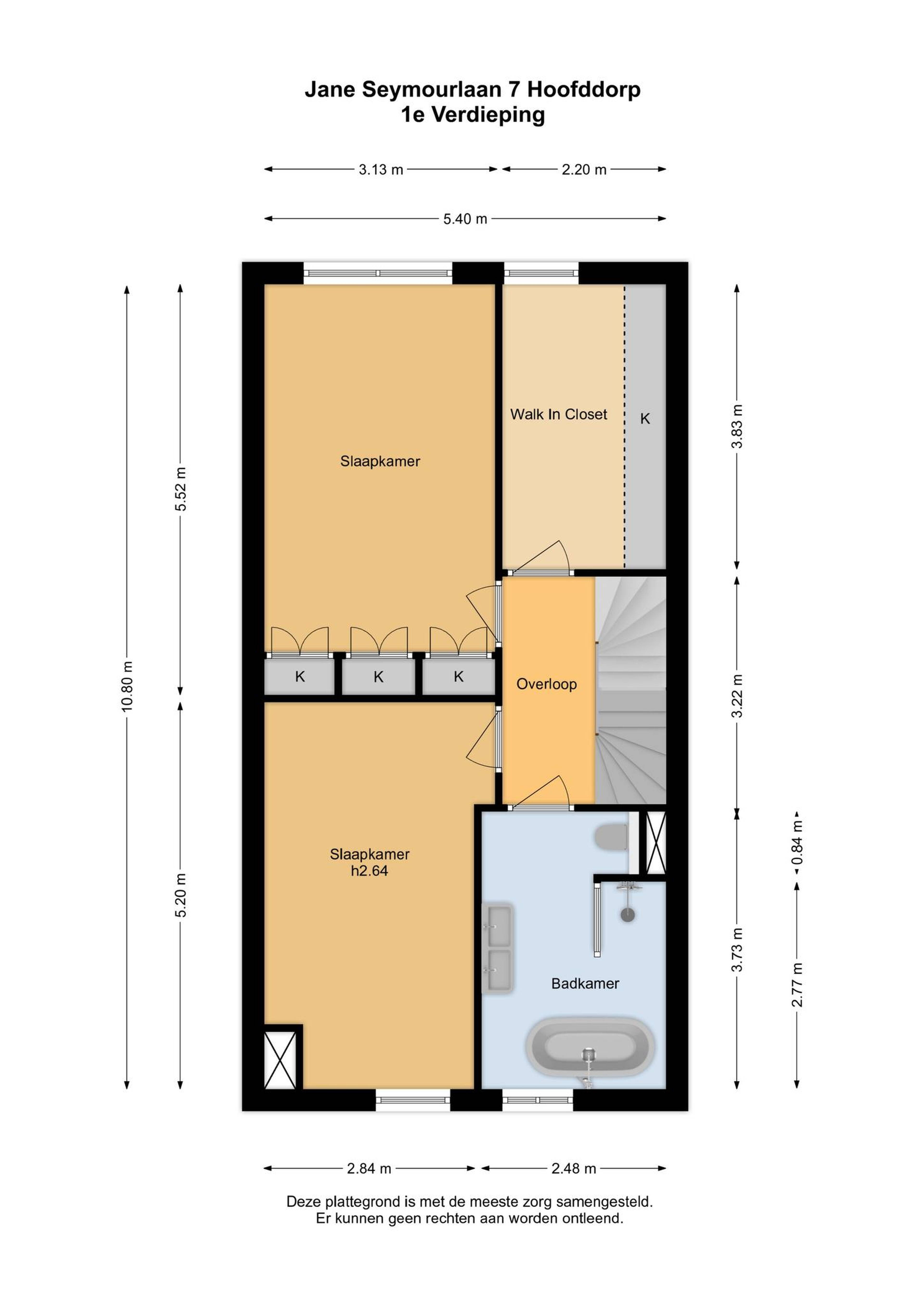 Aan de achterzijde zijn twee slaapkamers, ingericht als masterbedroom en walk-in-closet. De masterbedroom heeft een meer dan 3 meter brede kastenwand met lades en deuren. De slaapkamer naast deze kamer is ingericht als walk-in-closet en aan de voorzijde is een ruime kinderkamer, die overigens groot genoeg is om als tweepersoonskamer in te richten.