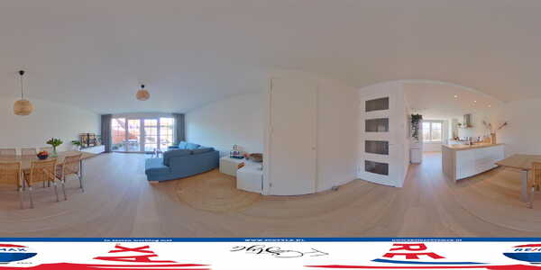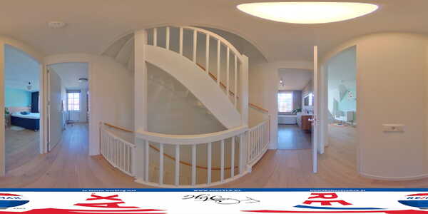 Als u de buitenzijde heeft bewonderd, is het tijd om deze prachtige woning van binnen te zien. Rechts in de hal zijn de garderobenis, meterkast, de toiletruimte met fonteintje en de trap naar de eerste verdieping. De houten vloer met vloerverwarming ligt op nagenoeg de hele begane grond en de wanden zijn strak gestuct.