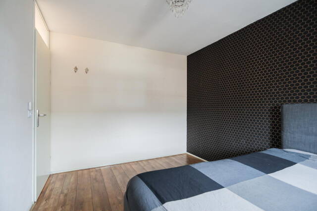 Op de eerste verdieping zijn de overloop, drie slaapkamers en de badkamer. Mooi detail zijn de dakkapellen aan de achterzijde die de slaapkamers heerlijk licht en sfeervol maken. Het is mogelijk om, net als de buren, een dakopbouw te plaatsen om de slaapkamers nog groter te maken. Op de overloop en in de slaapkamers ligt een bruine laminaat-vloer met houtpatroon, wat goed past bij het behang en schilderwerk op de wanden.