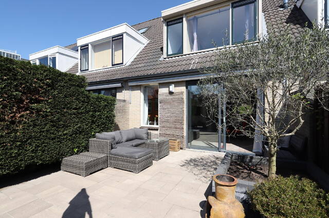 De woning beschikt over zowel een voor- als achtertuin, die beiden nog recentelijk onder handen zijn genomen. De voortuin is voorzien van sierbestrating met aan de voorzijde een border met beplanting. De achtertuin biedt ca. 48m2 aan zonnige buitenruimte gelegen op het zuidwesten. Op het grote zonneterras kunt u uitgebreid genieten van deze ideale ligging, en tijdens warme zomerdagen kunt u zich eenvoudigweg terugtrekken onder de schaduw van de zonwering. Doordat de schuifpui direct toegang biedt tot de woonkamer met open keuken, kunt u het diner makkelijk serveren op de eettafel buiten. Aan één zijde van de tuin zijn verder borders aangelegd met ruimte voor groenbegroeiing. Aan de achterzijde van de tuin bevindt zich ten slotte de stenen berging van ca. 7m2. Doordat de tuin via een achterom te bereiken is, kunt u uw fietsen prima overdekt stallen in deze berging.