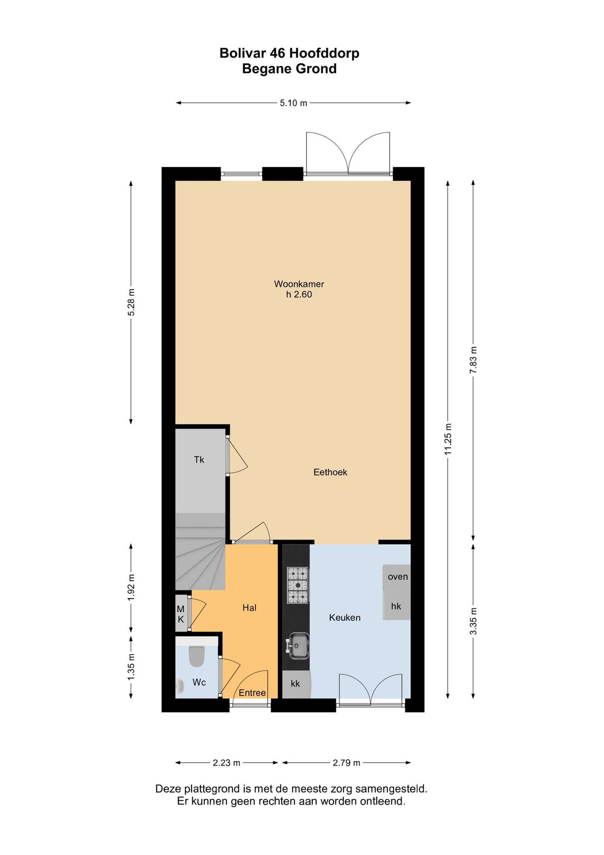 Open the front door to the spacious, bright hallway of this fantastic home. On the left you will see the stairs to the first floor, the meter cupboard and the toilet room with sink. The attractive living room has been extended at the rear and has patio doors to the backyard. Under the stairs is a deep cupboard and the colors on the walls match the laminate floor, which is also placed in the hall.