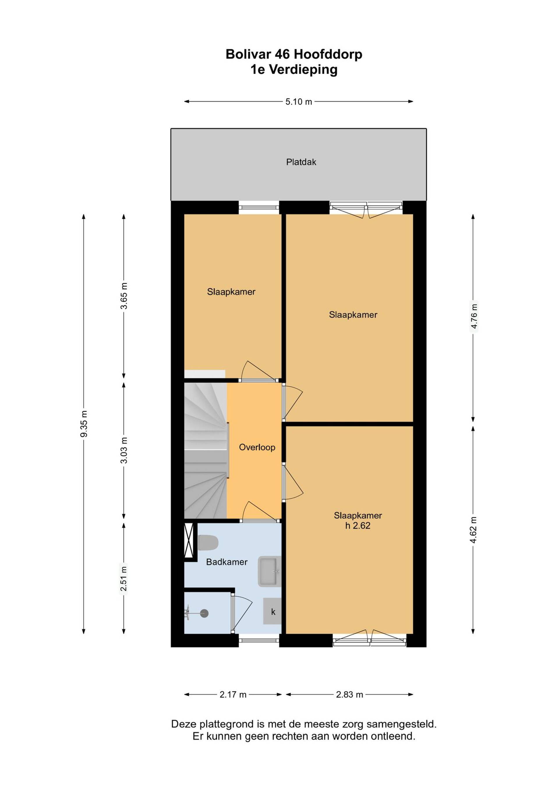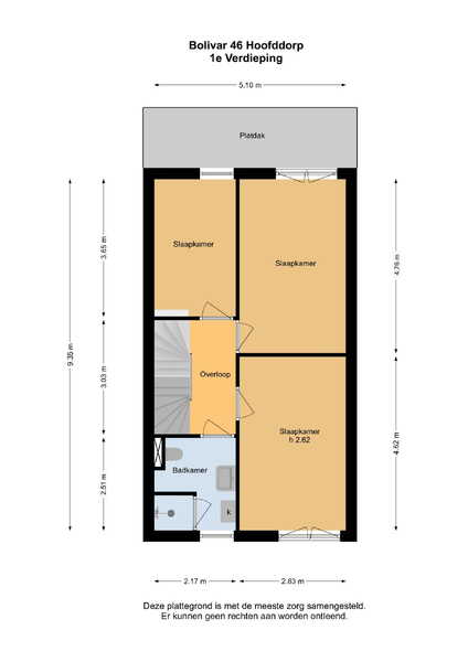 Vanaf de overloop zijn drie slaapkamers en de badkamer te bereiken. Op nagenoeg de hele verdieping ligt laminaat en de twee grootste slaapkamers zijn voorzien van een Frans balkon met openslaande deuren. U kunt twee kamers inrichten als tweepersoonskamer en de slaapkamer aan de linker achterzijde is een fijne werkkamer, kleedkamer of kinderkamer.