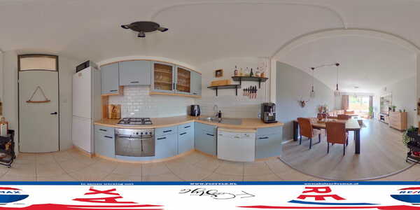 In the living room you will notice the open kitchen, equipped with a neat corner unit with various (built-in) equipment: a gas hob, extractor hood, oven and a dishwasher. The floor is tiled and the various upper and lower cabinets offer plenty of storage space.
