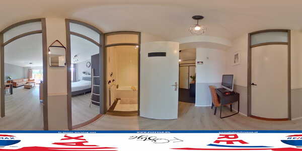 Open de voordeur en u komt in de ruime hal van het appartement. Op de vloer in de hal ligt een grote deurmat en laminaat. Er is meer dan genoeg ruimte voor een grote kapstok en mooie kast. Ook is er een werkplek gemaakt; ideaal wanneer u zich even wilt concentreren. Rechts in de hal zijn de toiletruimte, wasruimte en badkamer.