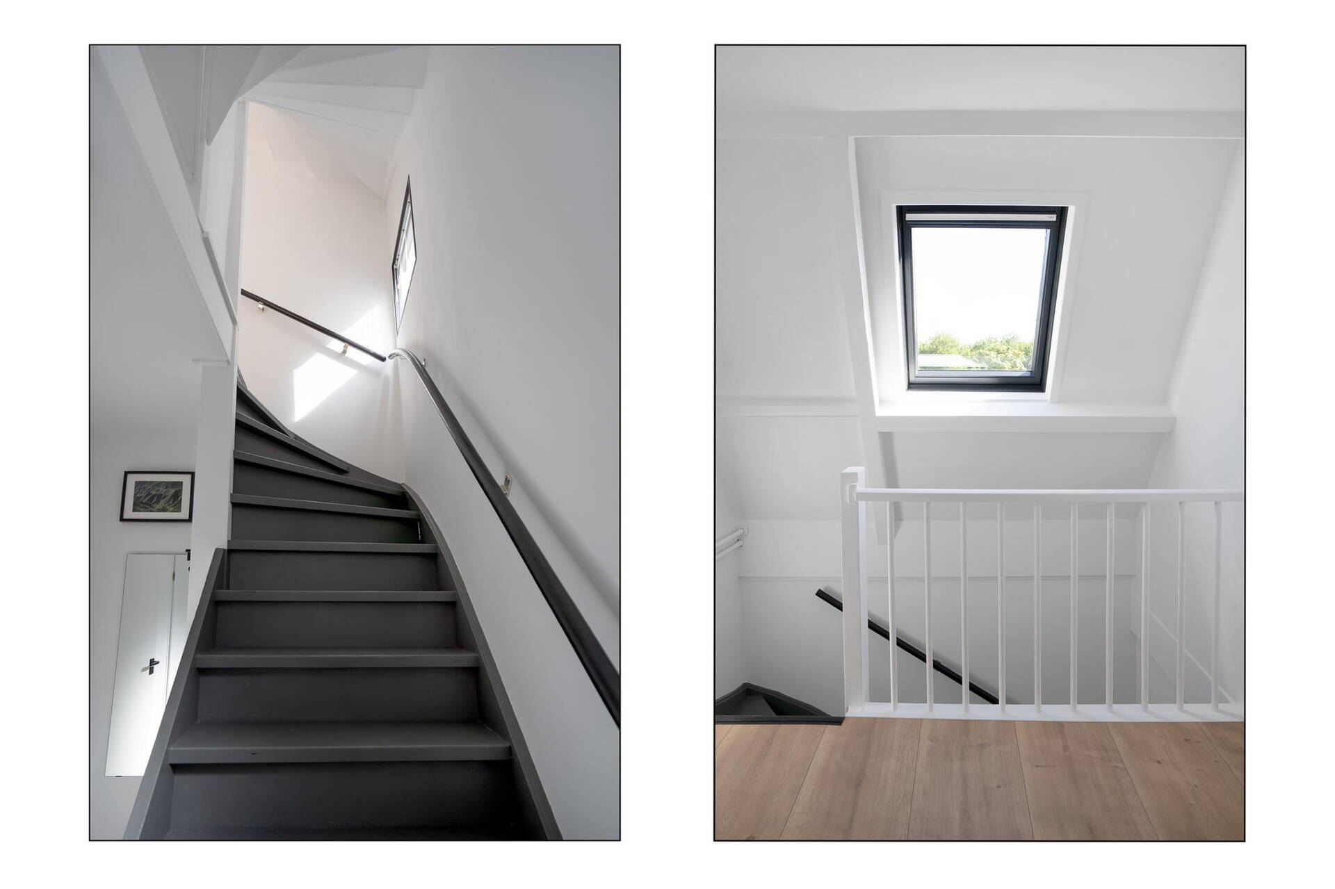 Dankzij de dakkapel is de ruimte op de tweede verdieping fors vergroot. Er is een vaste trap naar de lichte overloop, die in verbinding staat met een berging en een slaapkamer. In de berging hangen de cv-ketel en mechanische ventilatie-unit.
