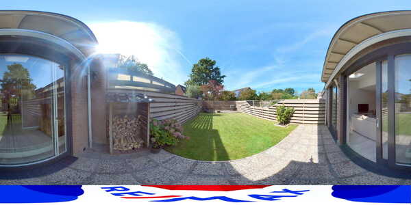 Open the sliding doors to the backyard, situated on the sunny west. In a large part of the garden is grass and there are two terraces, so you can sit in the sun all day. Wooden fences form a beautiful fence and against the back wall hangs a wide awning. The garden is adjacent to a green belt with beautiful trees, so there is no overlooking from that side.