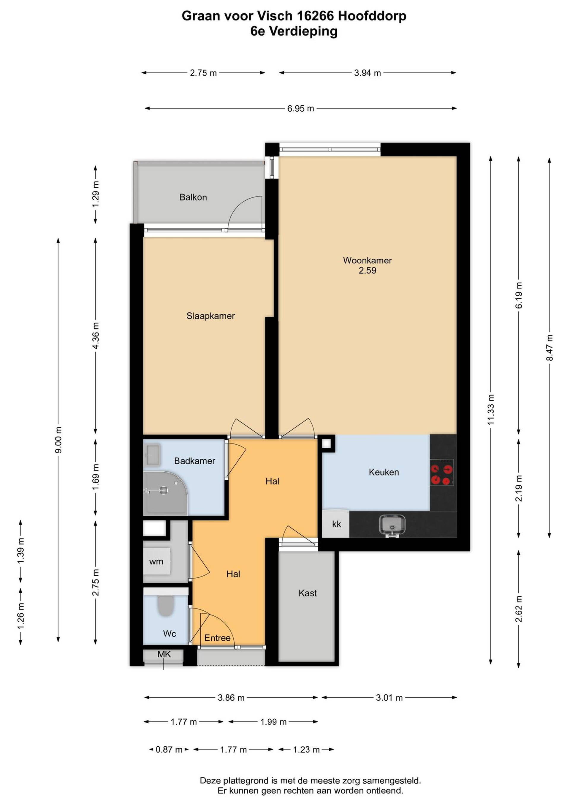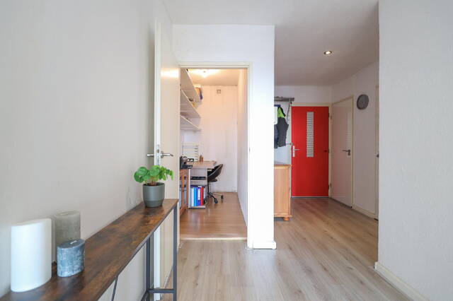 Als u uit de lift stapt op de 6de en tevens bovenste verdieping vindt u aan uw rechterhand het appartement. Open de voordeur en u komt in de ruime hal binnen.
