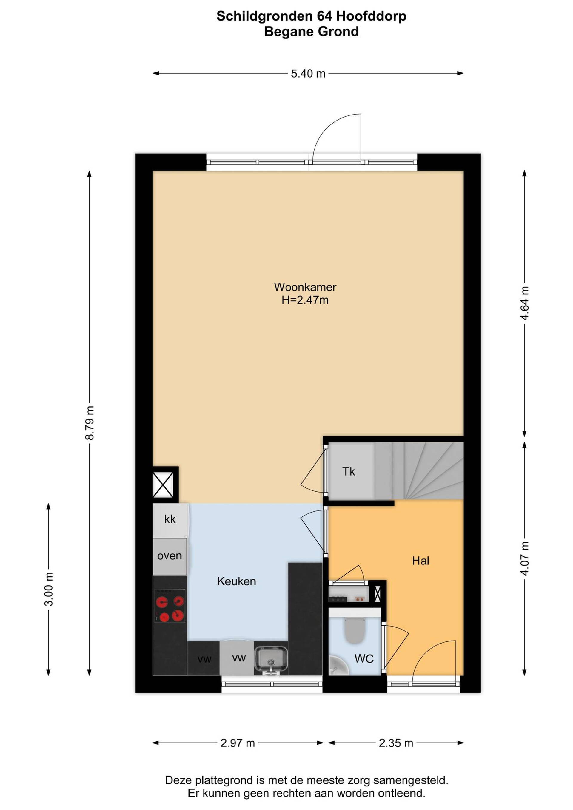 U komt binnen in de hal waar voldoende ruimte is voor een garderobe.