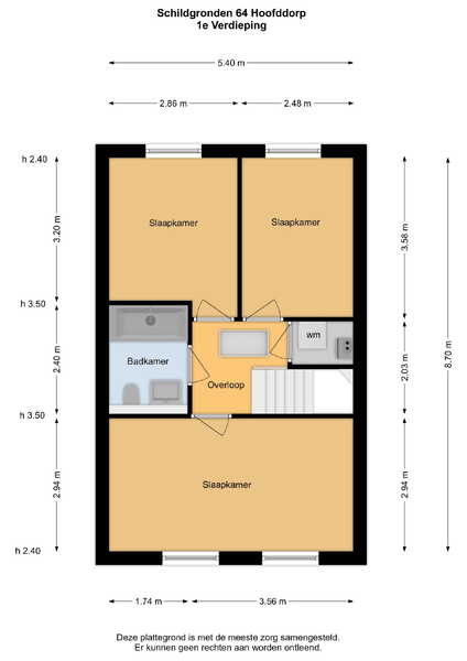 Aan de overloop grenzen drie flinke slaapkamers en de badkamer. Het geheel maakt een keurig nette indruk. Aan de voorzijde van de woning bevind zich de grootste kamer met inloopkast.