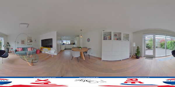 De moderne woonkamer met haar gestucte wanden is licht en ruim vanwege de grote raampartij aan de achterzijde. De deur biedt toegang tot de achtertuin. In de woonkamer is voldoende ruimte voor een eet -en zit gedeelte en in de trapkast heeft men plek voor voorraad en overige spullen zoals bijvoorbeeld de stofzuiger.