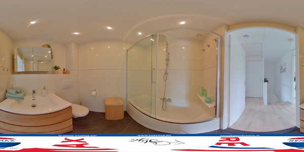 You enter the hall where there is enough space for a wardrobe. On the left you will find the neat toilet with fountain.