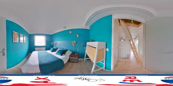 Three good-sized bedrooms and the bathroom adjoin the landing. The whole makes a neat and tidy impression. At the front of the house is the largest room with a walk-in closet.