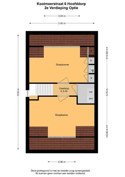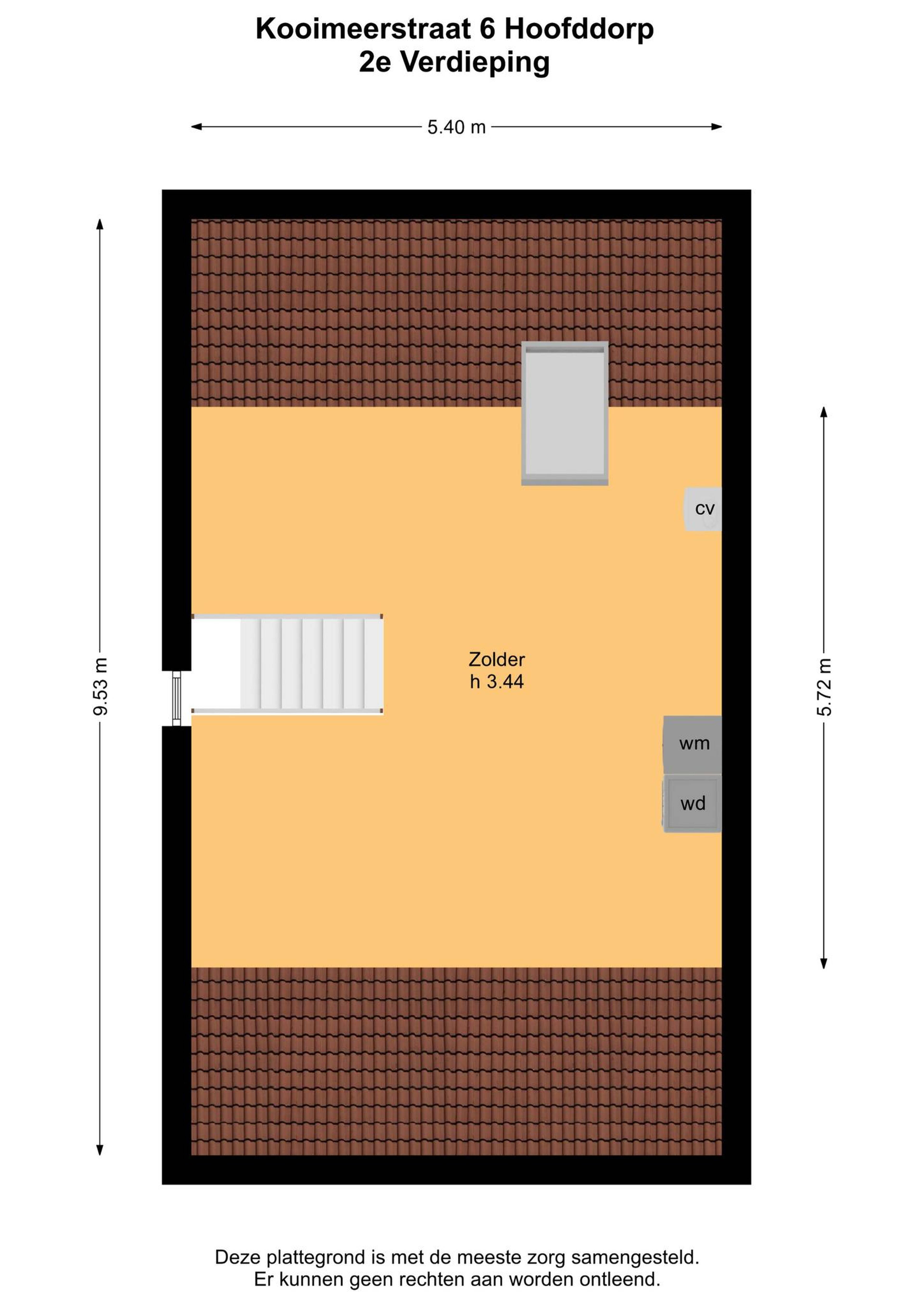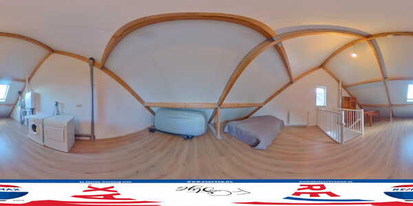 Onder het hoge, schuine dak bevindt zich een zeer ruime zolderkamer met verwarming, een zijraam, een groot dakraam en een nieuwe laminaatvloer. Om de potentie in beeld te brengen is er een plattegrond met een mogelijke indeling gemaakt. Het is mogelijk om twee extra slaapkamers, een overloop en een wasruimte te realiseren. Een andere invulling, bijvoorbeeld met een tweede badkamer, is ook mogelijk.