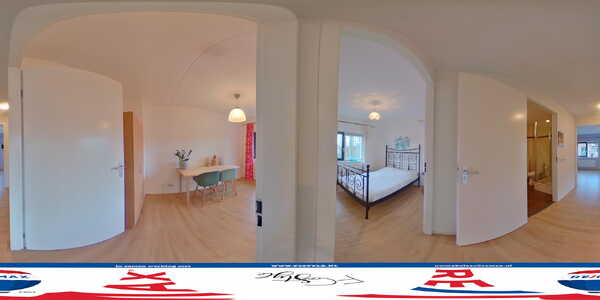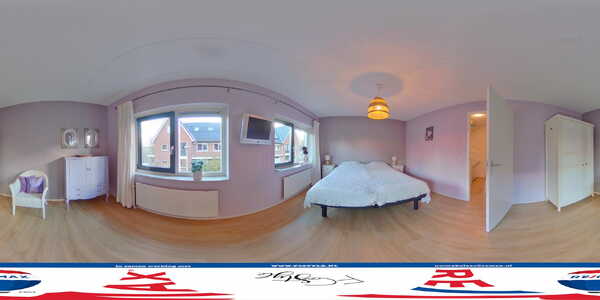 Twee ramen in de zijgevel zorgen voor veel lichtinval op de ruime overloop, waaraan drie slaapkamers grenzen. Aan de voorzijde is de master bedroom van maar liefst 17.8 m², te herkennen aan de paarse kleur op de wanden. De slaapkamers aan de achterzijde zijn ook te gebruiken als kleedruimte, werkkamer of logeerkamer. In alle slaapkamers en op de overloop ligt laminaat.