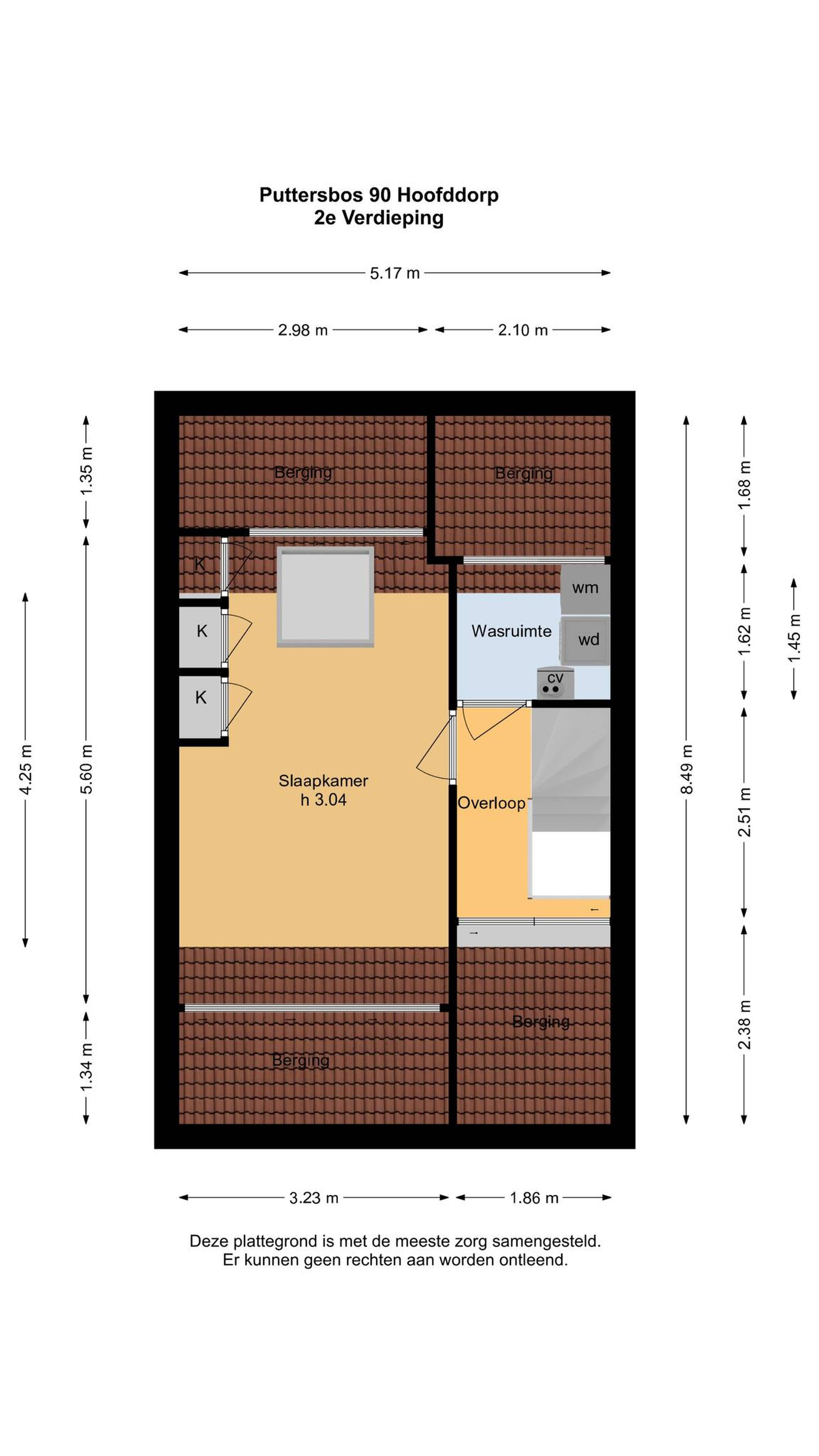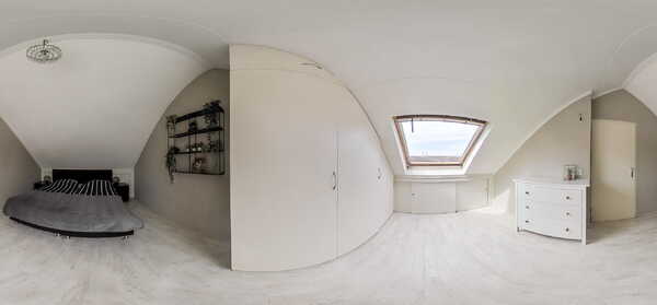 U kunt deze slaapkamer bereiken vanaf de overloop, die verder toegang geeft tot de wasruimte. Hier hangt de HR-ketel en kunnen de wasmachine en droger staan. Op deze verdieping ziet u meerdere schuifdeuren in de schuinten van het dak, waarachter veel praktische bergruimte verborgen gaat.