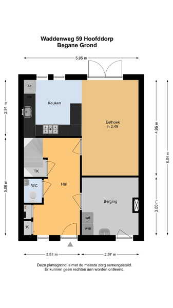 Bij binnenkomst voel je je meteen thuis. Links in de hal vind je de meterkast, een luxe toiletruimte met fonteintje en de trapopgang. Rechts is er toegang tot de inpandige berging, die ook een eigen toegangsdeur heeft. De grote, lichte woonkeuken met een stijlvolle grijze vloer is voorzien van alle benodigde inbouwapparatuur. Via openslaande deuren stap je zo de tuin in. De achtertuin met terras, gelegen aan het water, is onderhoudsvriendelijk aangelegd. Het wandelpad met hoge bomen en veel groen aan de achterzijde zorgt voor extra privacy, zonder directe achterburen.